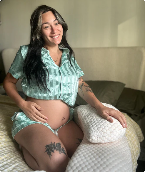 A cooling pregnancy pillow for a deeper and more comfortable sleep during pregnancy.